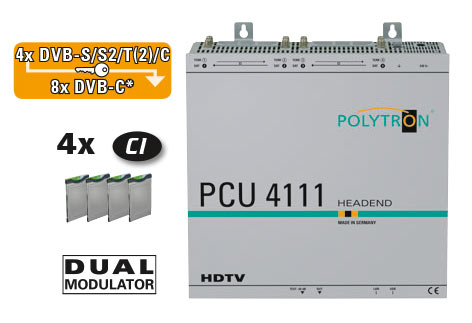 The triple tuner reception headend PCU 4111 converts the signals of four terrestrial or cable network channels into DVB-C channels.