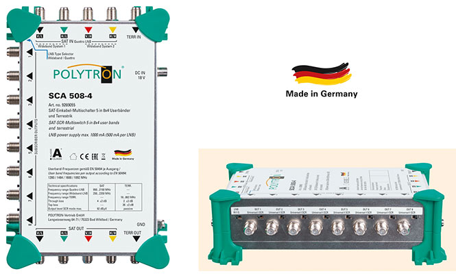 The POLYTRON SCA 508-4 resp. SCA 908-4 supplies up to 32 subscribers with satellite channels based on the SCR system (Satellite Channel Router).