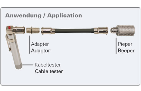 Shipment: cable tester with beeper, adaptor and micro- / AAA battery.
